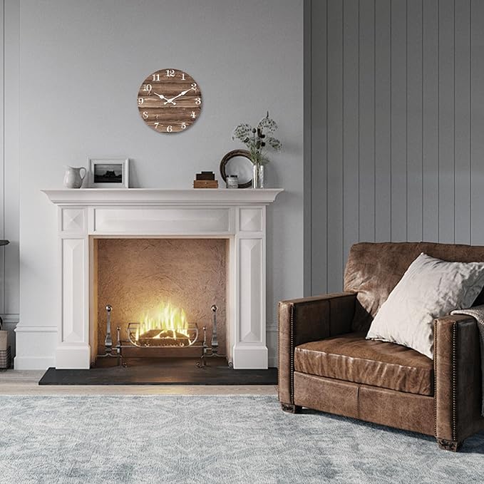 • 3.[Silent] - Rustic wall clock, no ticking sound, no noise, this quartz wall clock won't disturb you even when you are reading, working, thinking, chatting or sleeping.