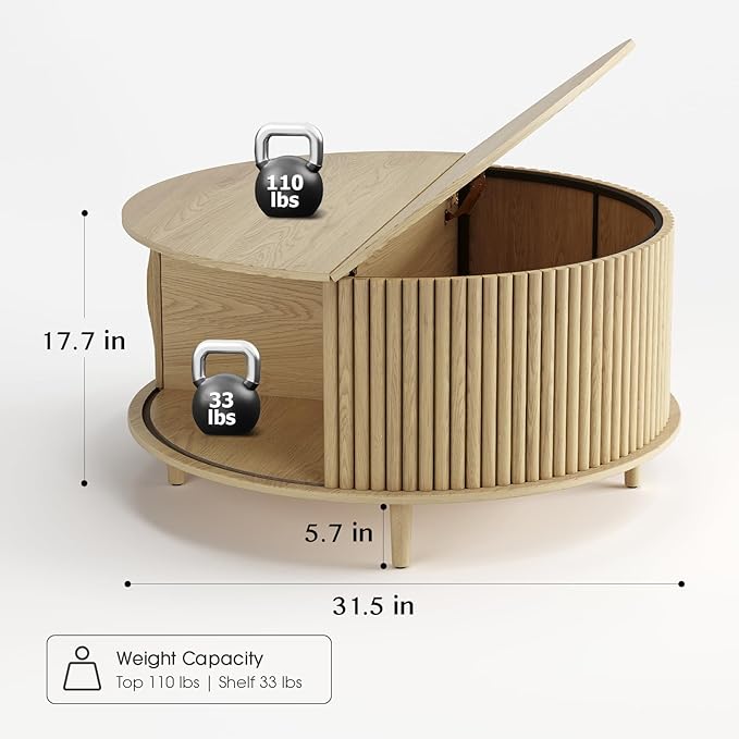 • Space Saving: This 31.5"coffee table is compact in size and adopts a 2-tier structure with hidden storage space inside and open storage space at the bottom,providing you with extra space to store magazines,snacks and trinkets,making your living room more tidy