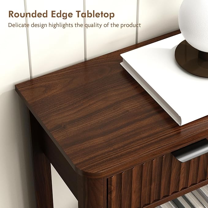 Fluted Console Table with Drawers, Modern 47.1" Entryway Table with Storage Shelf, Boho Narrow Skinny Behind Couch Wood Sofa Table for Living Room Hallway Entrance Foyer,Walnut