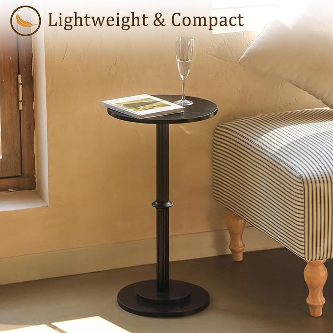 MaxSmeo Drink Table, Small Side Table for Small Spaces, Modern Round End Table with Fluted Wood Leg, Black