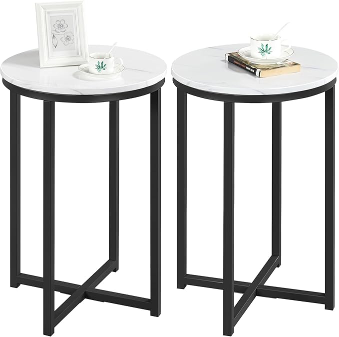 Yaheetech Round End Table Set of 2,16in Faux Marble Accent Table,Modern Side Table with Marble Top and Metal Frame,Small Coffee Table Telephone Table for Living Room/Small Space,Black