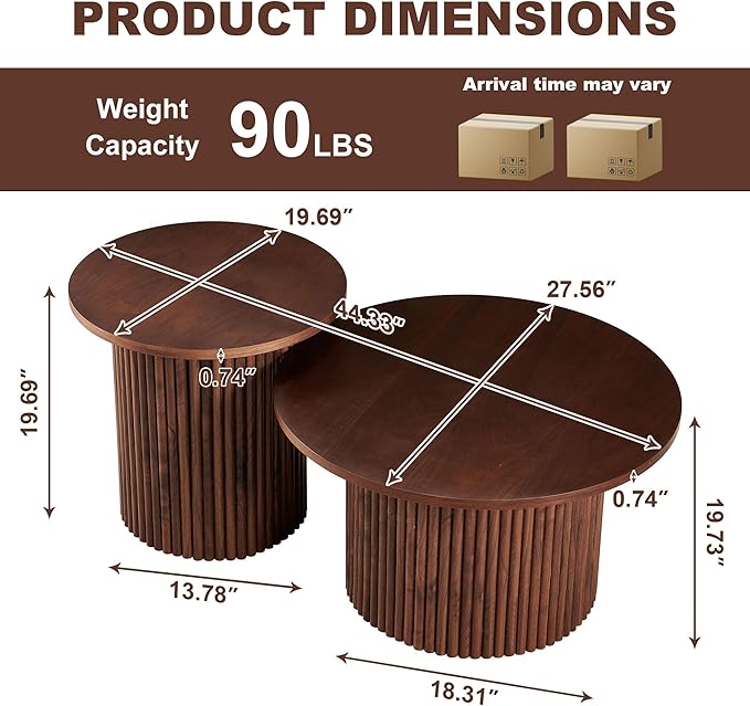 Round Coffee Table Set of 2,Small Side Table Set of 2, Circle Accent Tables with Walnut Wood Veneer Tabletop, Engineered Wood Strip Base for Small Spaces, Living Room