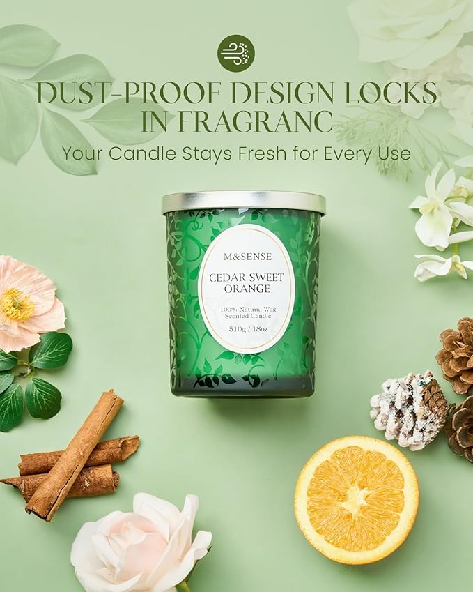 M&SENSE Cedarwood Orange Christmas Candle, Cracking Wooden Wick Soy Wax, 18oz 100 Hours Long Lasting Clean Burn, Large Fall Candles for Home Scented, Winter Holiday Aromatherapy Gifts for Women