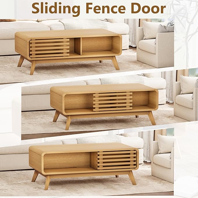 • 【Sliding Door Coffee Table】Our coffee table allows you to freely hide something you don’t want see or display often-used objects by its smooth sliding door. It also saves much space compared with pull-out doors. You can also choose to slide the door to any side to conceal side storage cabinets or the middle open-cubby for a clean, organized look
