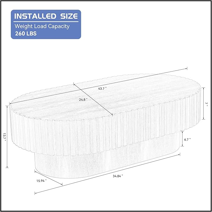 • ☕【Compact Coffee Table】: With a lengths of 43.70 inches, this coffee table small footprint, making it an ideal choice for living room, bedroom, office, small flat and other occasions. Weight limit 260 pounds, overall dimension 43.7" W x 24.8" D x 13.7" H. To save your time and get suitable items, please kindly check the dimensions whether they are expected.