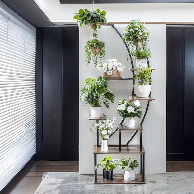 • 🏆plant stand indoor 9-Tier Space-Saving Vertical Garden Industrial-grade metal plant stand tall (63") holds 7+ plants - perfect for sunroom decor & indoor plant towers.plant stand Adjustable shelves fit large planters (12" diameter max).