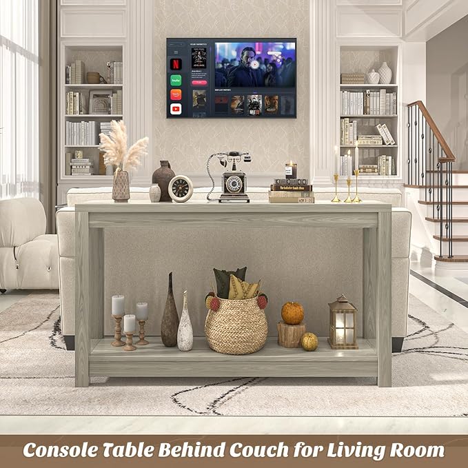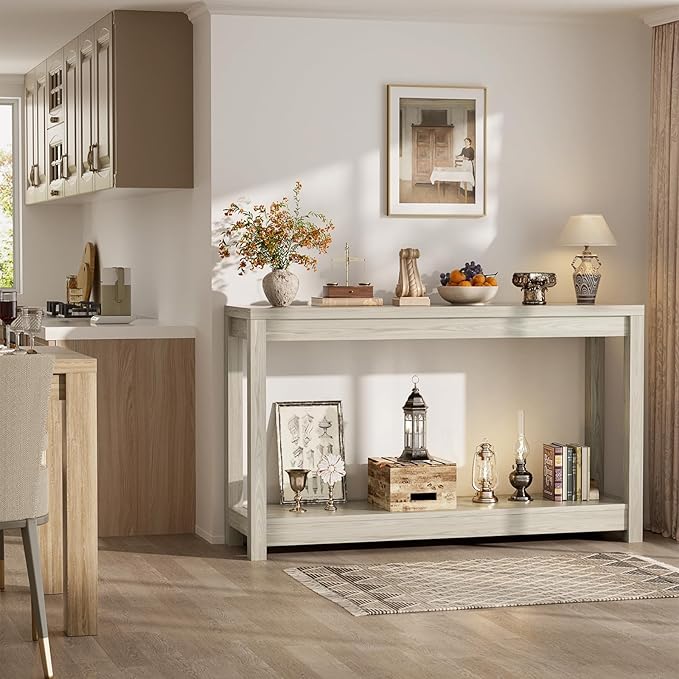 47" Farmhouse Wood Entryway Table Narrow Console Table with Storage Behind Couch Sofa Table with Shelves Entry Way Table with Open Storage, Easy Assembly, Classical Washed Oak