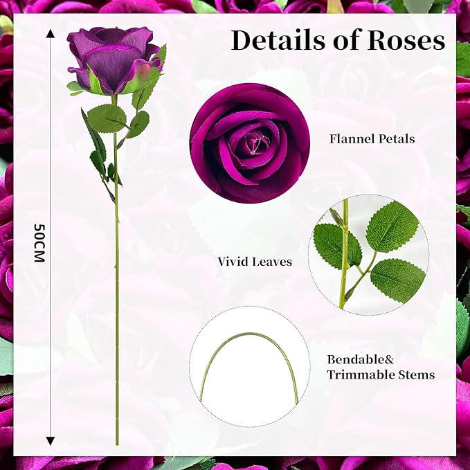 • 【Easy To Use】:The stem is flexible. According to your needs, it can be easily bent, cut, or pulled out. Very suitable for flower arrangement and decoration at Valentine's Day, Halloween, weddings decorations, birthday parties, holiday decorations, and any occasion.
