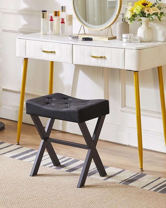 • Versatile uses: This stool can not only be used as a makeup stool, but can also be placed next to a sofa or bed as a footrest, at the entrance foyer as a shoe changing stool, and can also serve as a small side table to place small items such as tea cups and books.