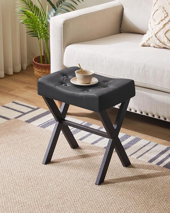IBUYKE U-Shaped PU Vanity Stool, Square Makeup Chair with X-Leg, Ottoman Seat Footrest Stool, Multi-Use as Small Side Table, for Bedroom, Living Room, Black WBD019B
