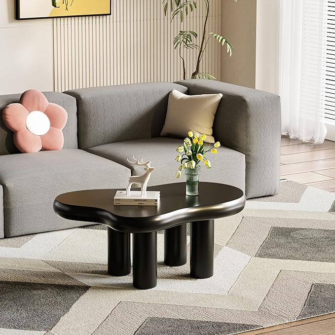 39.37" Cloud Coffee Table, Modern Coffee Table Small Coffee Table, 39.37 inch Wood Coffee Table Center Table, Cloud Shaped Accent Sofa Side Coffee Table for Living Room Apartment, Black