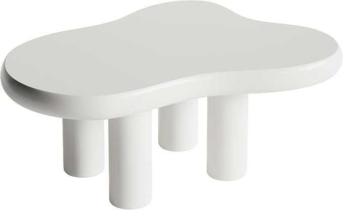 39.37" Cloud Coffee Table, Modern Coffee Table Small Coffee Table, 39.37 inch Wood Coffee Table Center Table, Cloud Shaped Accent Sofa Side Coffee Table for Living Room Apartment, Cream White
