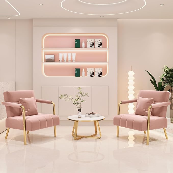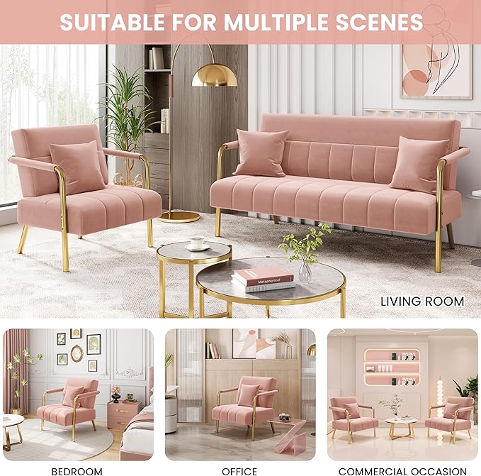 Yaheetech 30" W Accent Chair Velvet Oversized Armchair Living Room Chair with Golden Frame & Cozy Pillow for Living Room, Bedroom, Office Pink