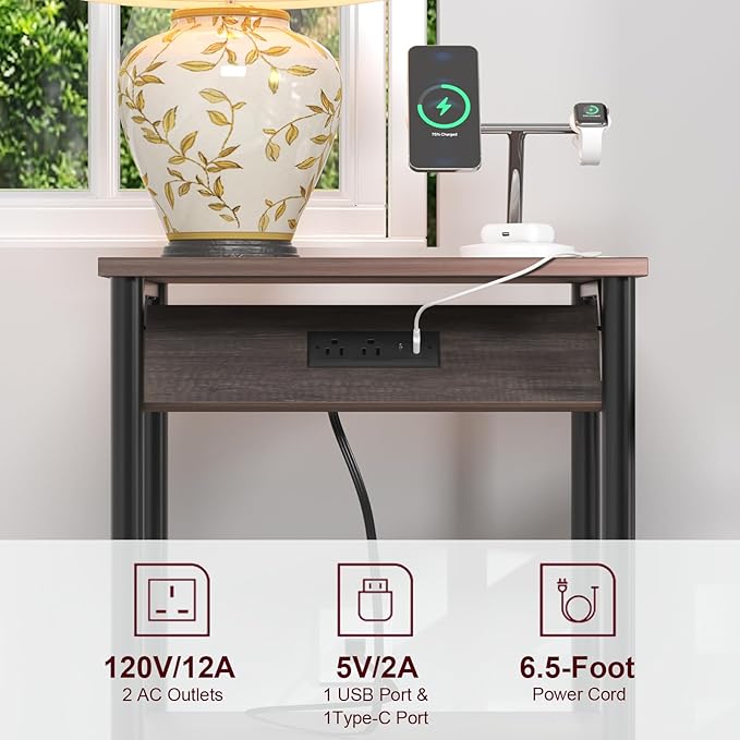 • 【Sofa/Bed Side Tables with Charging Station】 Worried about low battery? The small end tables set of 2 with charger station comes with 2 AC power outlets, 1 USB port and 1 Type-C port, allowing you to use fully charged devices without leaving your bed or sofa