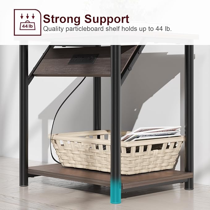 • 【Easy Assembly】With simple structure, complete accessories and numbered labels, you can follow the detailed instructions and tools in the package and easily complete the assembly of these rustic end tables with charging station within 15 minutes