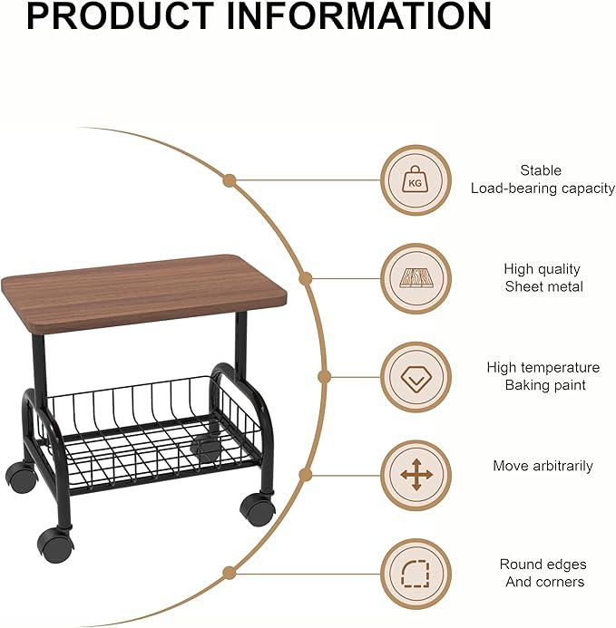 16.92"* 11.81" Small Side Table with Storage, Modern Mid-Century 2 Tier End Table, Sturdy Metal Frame and Storage Shelf, Movable Accent Table for Any Room Style, Modern Country Style, Brown and Black