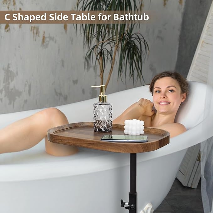 • Multi-functional C Table: This adjustable height sofa table can be used as a convenient food or drink table, couch table, tv table, night stand, snack table, bedside caddy, wine table, accent table, bathtub tray, or for other purposes, and also serve as a perfect room decoration. This small end tables is easy to adapt to the gaps between sofas or the narrow space next to the bed.