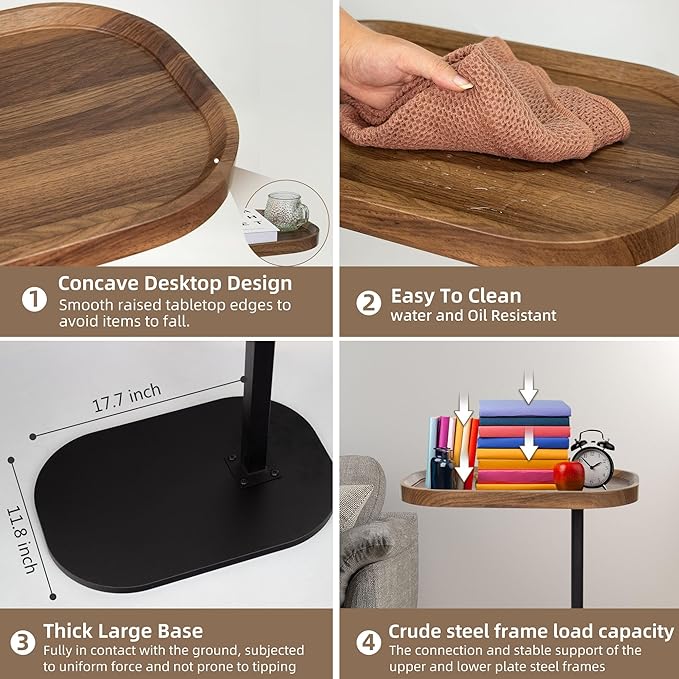 • Safety & Sturdy c table end table: Our couch arm table is made of sturdy square steel pipes and and high quality engineered wood, which are stable and long-lasting, with a maximum weight capacity of up to 45 lbs. The wood grain table top easy to clean, measuring 17.7 "L x 11.8" W. The sturdy base greatly enhance our bedside shelf's stability.