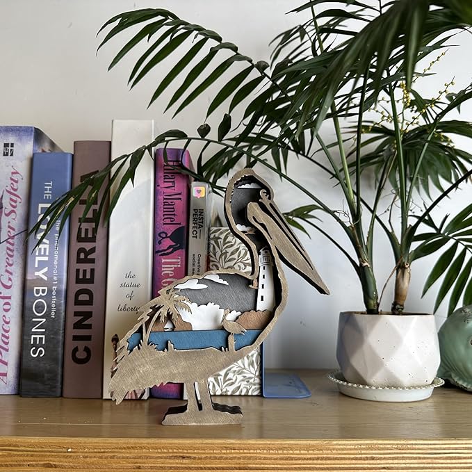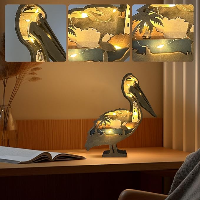 3D Wooden Carving Animals Lamp - Creative Fox Squirrel Wood Carved LED Night Light Garden Yard Wooden Animals Sculpture Ornaments Desktop Home Decor Birthday Gifts for Family Friend (Pelicans)