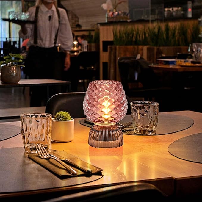• Small Cordless Lamp: This tiny glass lamp will adorn any space in your home, adding a touch of elegance to your living room, bedroom, dining room, kitchen, bathroom, patio, and backyard. It takes up less area and is easy to move, making it quite suitable for small spaces such as corner shelf, kitchen counter, bathroom vanity, console table, nightstand, and patio table