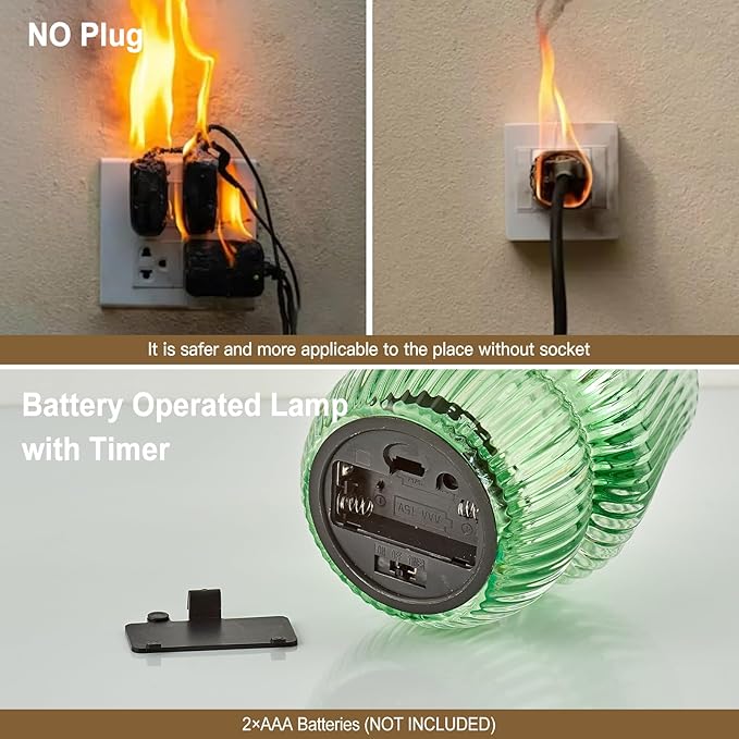 • Battery Operated Lamp: This battery operated lamp runs on three AAA batteries (NOT included), utilizing a low-voltage soft-light LED bulb (included). No power cord and outlet are needed, making it safer and more convenient. No worries about the risk of fire and electric shock. No worries about clutter of dirty cords and tripping over them. You can use it anytime and anywhere. It will create a relaxing ambiance during chatting, dinig, cooking, bathing, yoga, spa relaxation, etc
