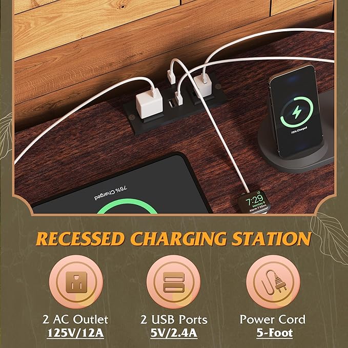 • 【✨ With Power Outlet】Say goodbye to messy wires! TV stands is equipped with 2 AC sockets +2 USB ports, 1.5m flexible cable length, TV, game console, router a power board can be done, instant increase desktop cleanliness by 50%, through UL/ETL certification, electricity safety!