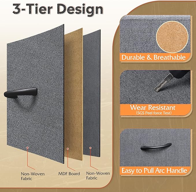 • 【✨ Durable Quality Material】The drawer consists of 3 layers of high-quality fiberboard, easy-to-clean and breathable non-woven fabric, the desktop is made of P2 grade artificial wood, scratch resistant and easy to clean, the material process and safety are strictly tested by EPA&SGS, health and environmental protection, excellent quality for you and your family to create a peaceful life!