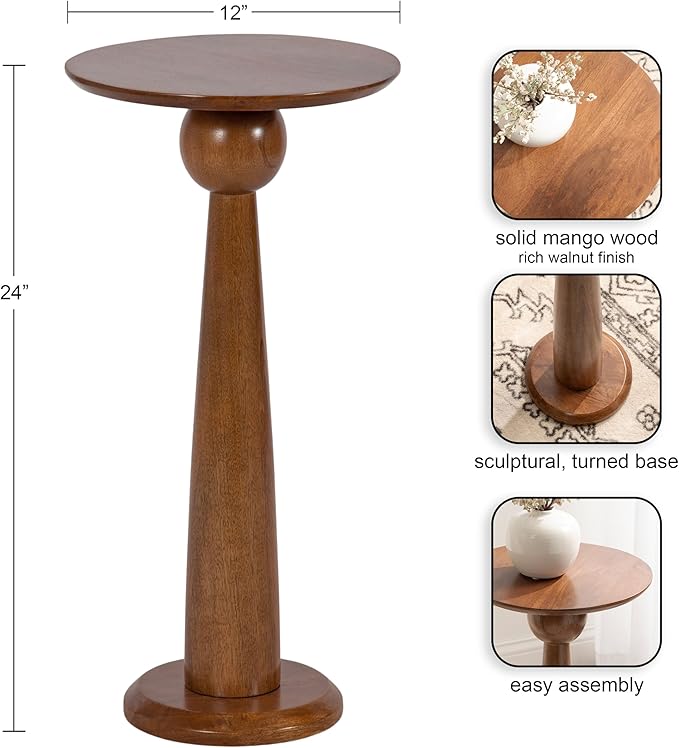 • Perfect Bedroom Nightstand Size: This table stands 24 inches high with a 12-inch diameter, creating a compact look that is perfect for your bedroom or a pedestal plant stand