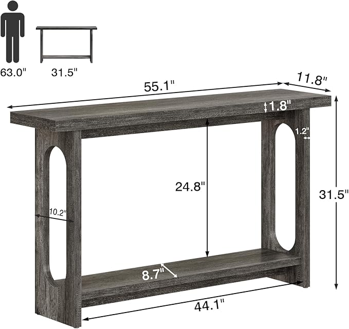 • 【Space-Saving】:At 11.8" D x 55.1" W x 31.5" H, this narrow console table fits entryways, hallways, and behind sofas without crowding your space.