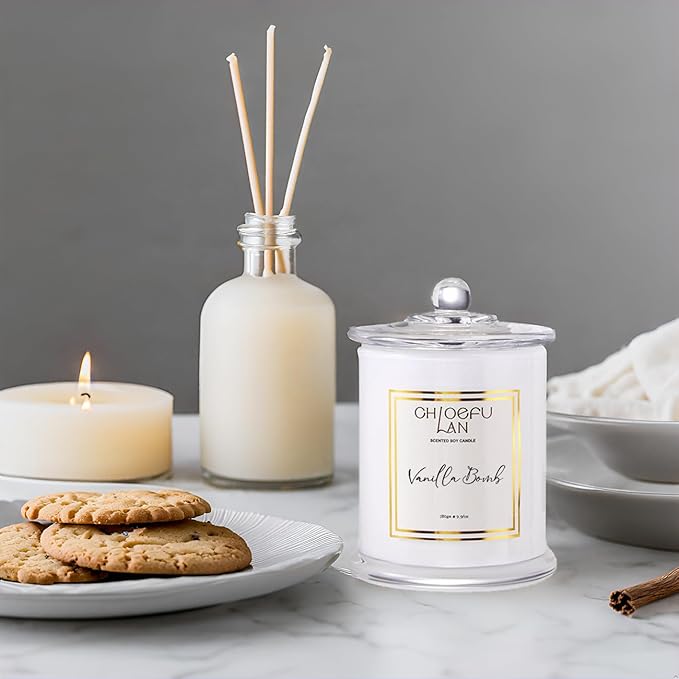 Chloefu LAN Vanilla Bomb Candle, Vanilla Scented Candles Gifts for Mothers Day, Gifts for Women & Men, Luxury Jar Candles, 70 Hours Long Burning, Natural Soy Candles for Home Scented, 10oz
