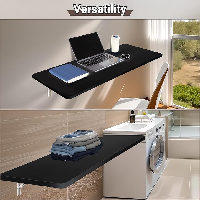 • Wall Mounted Folding Table: The collapsible wall desk features coated solid medium density fiberboard and heavy duty folding steel brackets, which is sturdy and durable