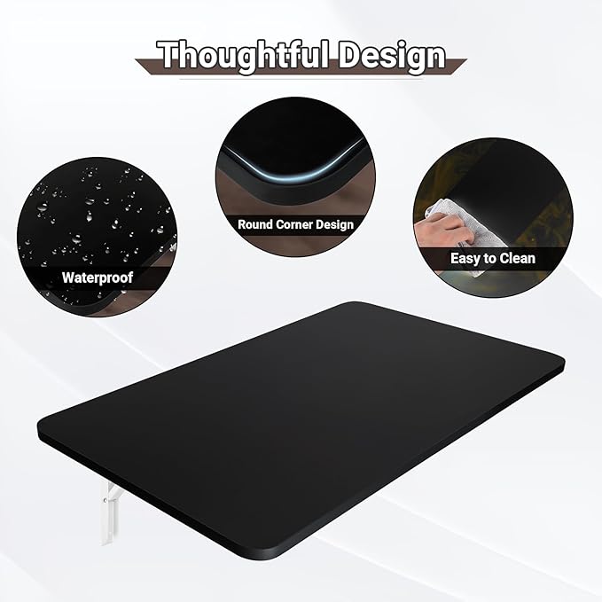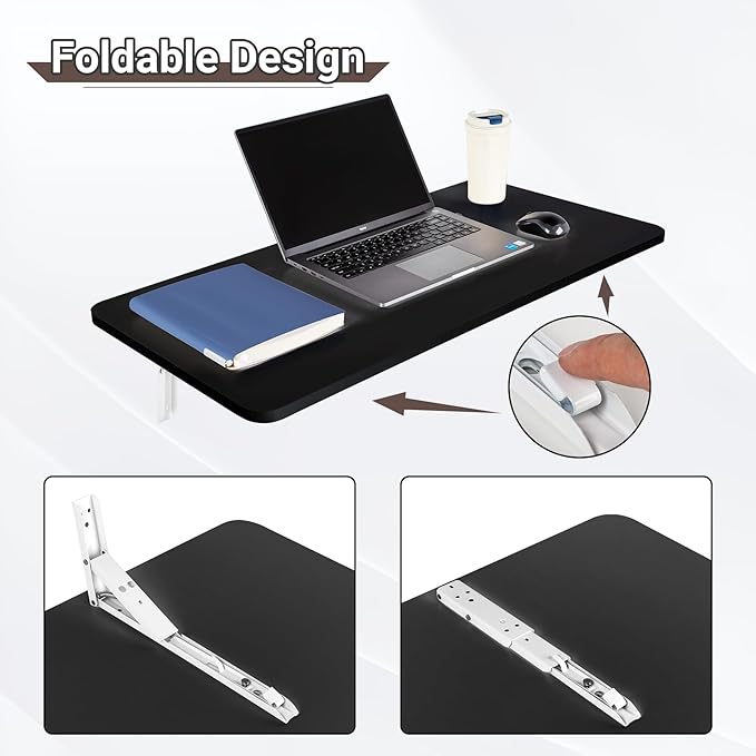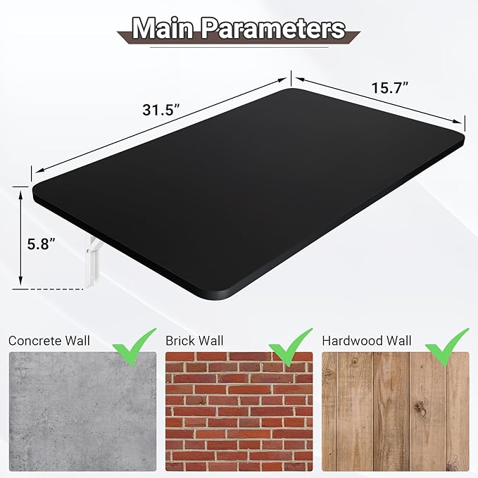 • Wall Mounted Folding Table: The collapsible wall desk features coated solid medium density fiberboard and heavy duty folding steel brackets, which is sturdy and durable