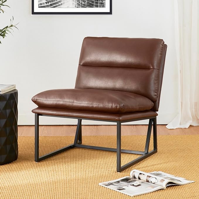 Glitzhome Mid Century Modern Accent Chair, Living Room Chair Thick Leatherette Chair with Metal Frame, Side Chair with Backrest, Upholstered Leisure Chair for Living Room, Bedroom, Office,Coffee 1PC