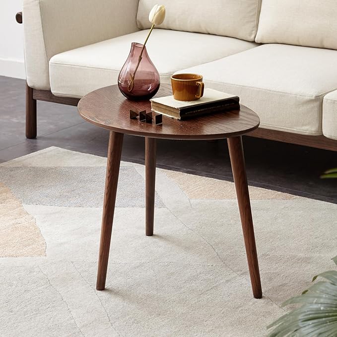 Walnut Side Table,Oval End Table - FAS-Grade North American Oak,17.5''D x 25.6''W x 19.7''H Modern Solid Wood Side Table with Triangle Legs,Compact for Small Spaces,Easy Assembly