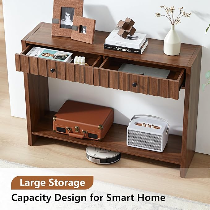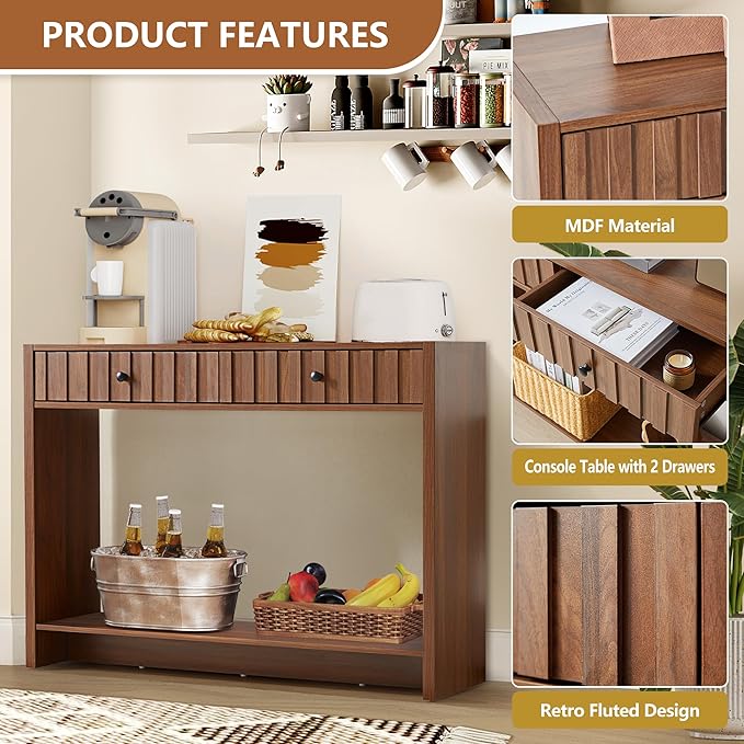 AVZEAR Entryway Console Table with Fluted Drawers, Mid Century Entryway Table with Storage, 43" Long Couch Table Behind Sofa Narrow Sofa Table Console Tables for Living Room Hallway Entrance, Walnut