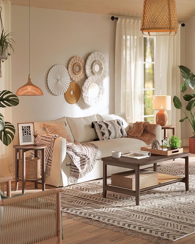 • Boho Elegance: Featuring a sleek, rounded silhouette and refined rattan-like shelf, this bedside table blends effortlessly with various home decor, adding a warm flair to your living room or bedroom