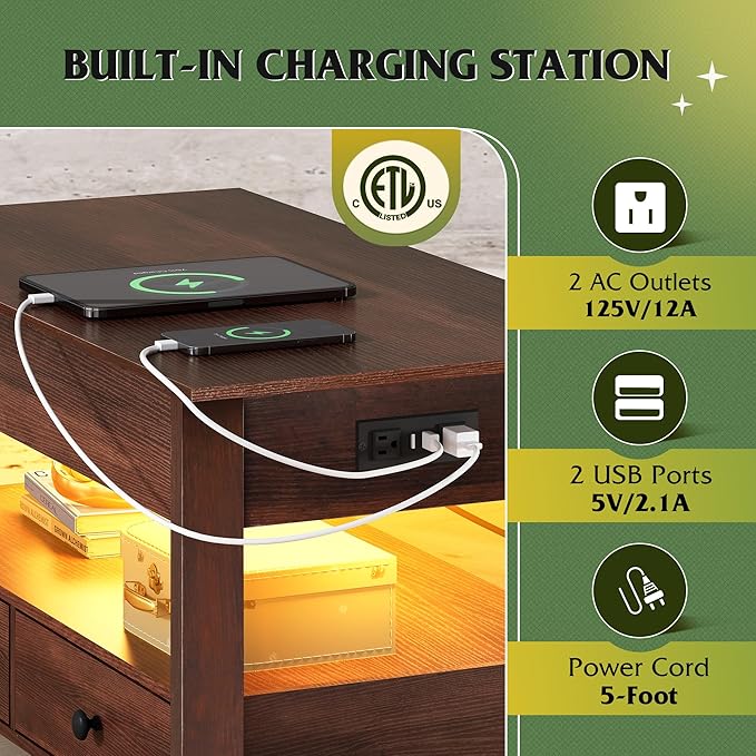 • 【Extra Large Storage Space】The hidden storage compartment underneath the lift tabletop can keep your items away from dust; the design of two drawers and one open partition can fully expand the storage space to meet your diverse storage needs.