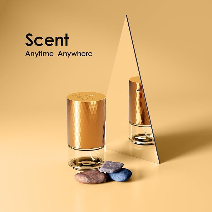 Airversa Waterless Diffuser Essential Oil 100ml Capacity Scent Air Machine for Home Aromatherapy Premium Metal Nebulizer Battery Operated 3 Mist Settings Timers Color Light AN5(Gold)