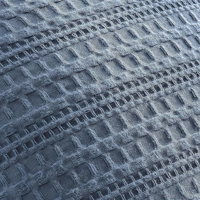 ZeeMart 100% Cotton Waffle Textured Throw Pillow Covers Set of 2, 22x22 Inch Blue, Soft Farmhouse Decorative Couch Pillow Cases Blue Cushion Covers for Sofa Bed Living Room Home Decor