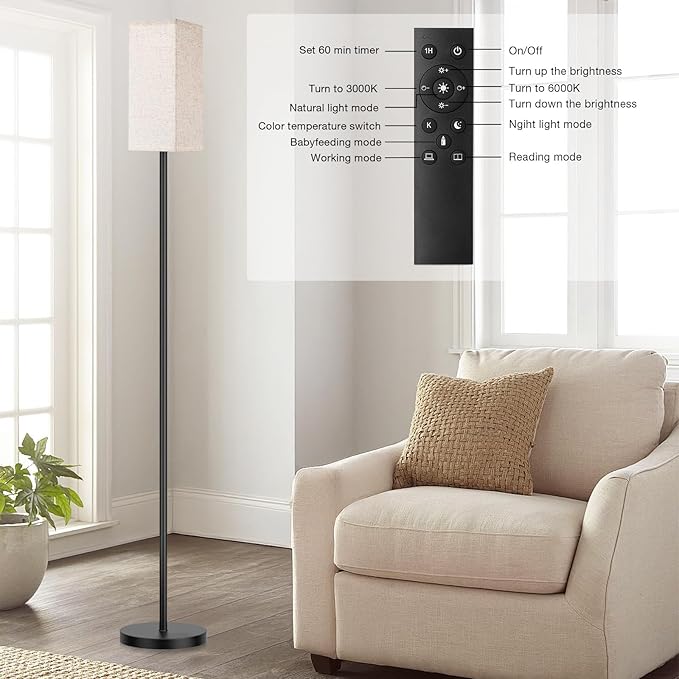 • Dimmable Floor Lamp with Remote Control & Foot Switch: This 61'' standing lamp adopts a combination remote control & foot switch, assuring convenience for daily life. The 9W bulb is paired with the remote control, then you only need to select the appropriate color temperature and brightness suiting your needs.(Please adjust the foot switch into ON in advance./Our remote control can only work on our own light bulbs.)