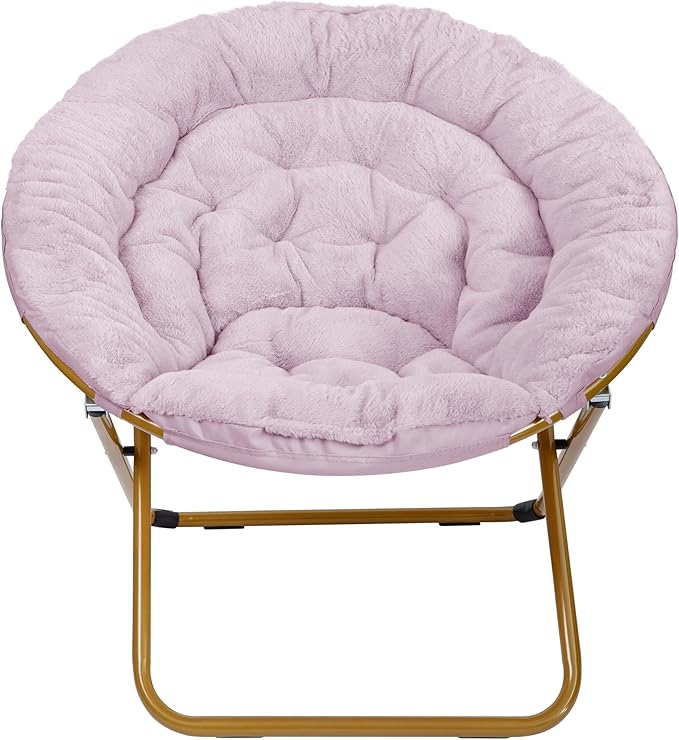 EMMA + OLIVER Ersa Oversize Folding Saucer Chair - Dusty Purple Faux Fur Moon Chair - Soft Gold Metal Frame - 38" Portable Folding Chair - for Dorm and Bedroom