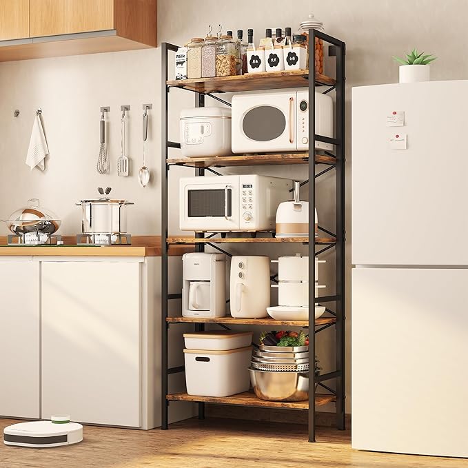 • 【Multi-Functional Storage Solution】​​ The open-back design with 5 spacious tiers (12.6" deep) organizes books, decor, kitchen appliances, plants, and more. Perfect as a bookcase, display rack, pantry shelf, or office organizer - adapts to any room effortlessly.