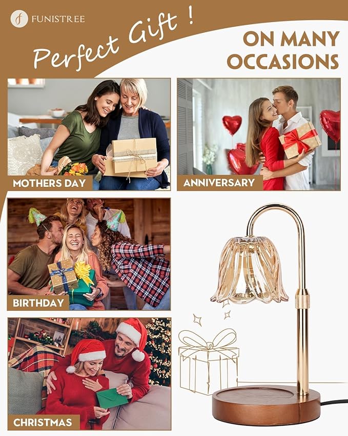 • Safety with Timer: This candle warmer lamp with timer uses 2 included 50W bulbs to melt wax without smoke, or soot—keeping your air clean and your home safe. Set the convenient 2/4/8-hour timer for worry-free operation, eliminating the danger of forgotten candles. A truly carefree way to enjoy your favorite fragrances
