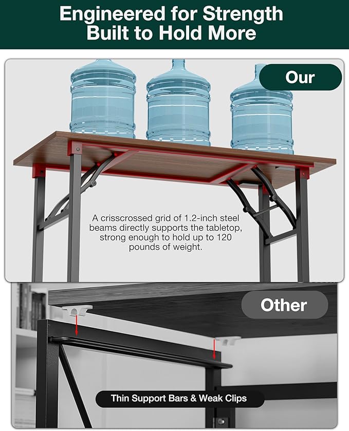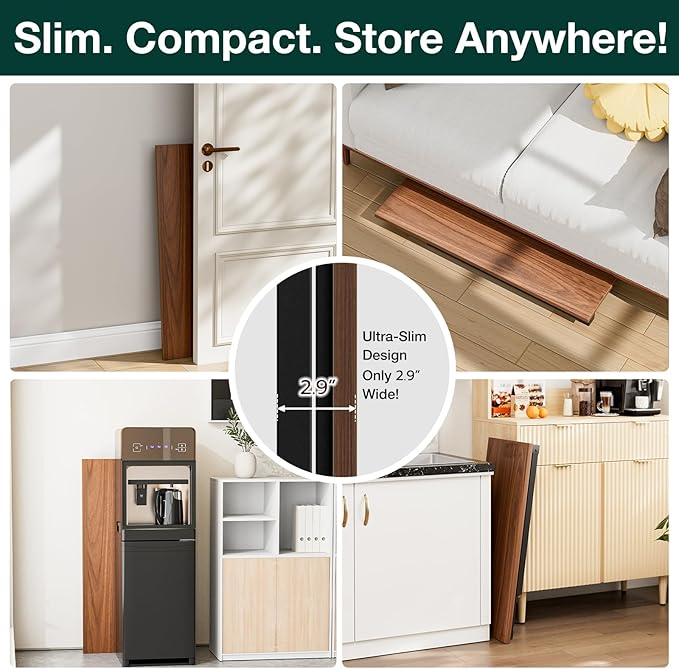 • 👍𝗙𝗢𝗟𝗗𝗦 𝗙𝗟𝗔𝗧 𝗪𝗜𝗧𝗛 𝗦𝗣𝗔𝗖𝗘-𝗦𝗔𝗩𝗜𝗡𝗚 𝗦𝗧𝗢𝗥𝗔𝗚𝗘 — With a folded thickness of only 2.9 inches, this desk fits easily under beds or behind doors. Lightweight and compact, it’s perfect for small-space living or temporary setups like trade shows and pop-up workstations