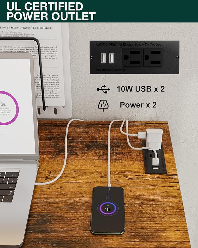 • 👍𝗜𝗡𝗧𝗘𝗚𝗥𝗔𝗧𝗘𝗗 𝗣𝗢𝗪𝗘𝗥 𝗛𝗨𝗕 – 𝗖𝗛𝗔𝗥𝗚𝗘 𝗘𝗩𝗘𝗥𝗬𝗧𝗛𝗜𝗡𝗚 𝗔𝗧 𝗢𝗡𝗖𝗘 — Stay powered and productive with 2 built-in AC outlets and 2 USB ports—perfect for laptops, phones, tablets, and more. No more messy extension cords or reaching for distant plugs; this smart design keeps all your devices charged and your workspace neat