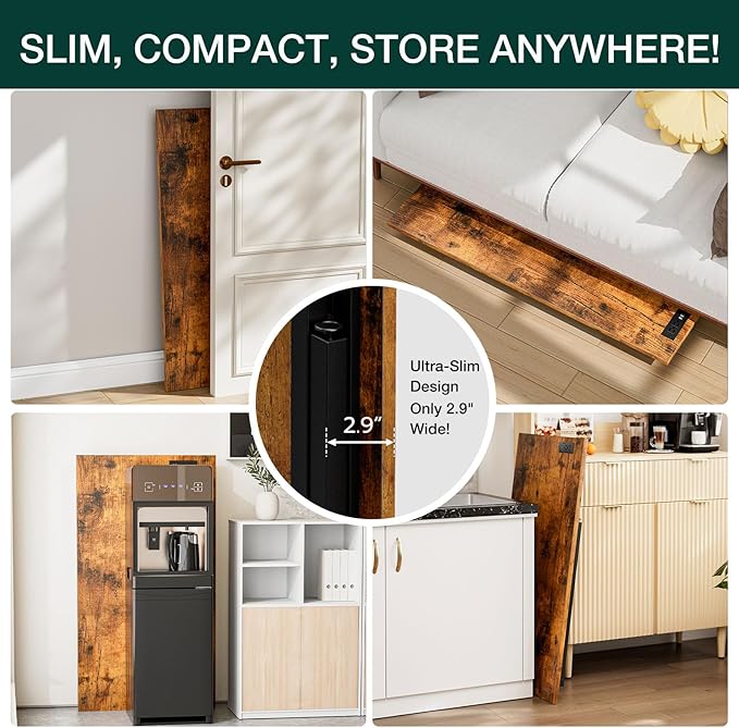 • 👍𝗨𝗟𝗧𝗥𝗔-𝗦𝗟𝗜𝗠, 𝗦𝗣𝗔𝗖𝗘-𝗦𝗔𝗩𝗜𝗡𝗚 𝗦𝗧𝗢𝗥𝗔𝗚𝗘 — When folded, the desk is just 2.9" thick—easily stored behind doors, under beds, or in closets. Lightweight and portable, it’s perfect for compact living areas or anyone needing a foldable table that’s easy to move