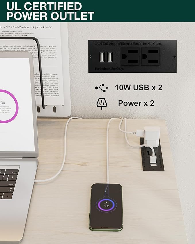 • 👍𝗜𝗡𝗧𝗘𝗚𝗥𝗔𝗧𝗘𝗗 𝗣𝗢𝗪𝗘𝗥 𝗛𝗨𝗕 – 𝗖𝗛𝗔𝗥𝗚𝗘 𝗘𝗩𝗘𝗥𝗬𝗧𝗛𝗜𝗡𝗚 𝗔𝗧 𝗢𝗡𝗖𝗘 — Stay powered and productive with 2 built-in AC outlets and 2 USB ports—perfect for laptops, phones, tablets, and more. No more messy extension cords or reaching for distant plugs; this smart design keeps all your devices charged and your workspace neat
