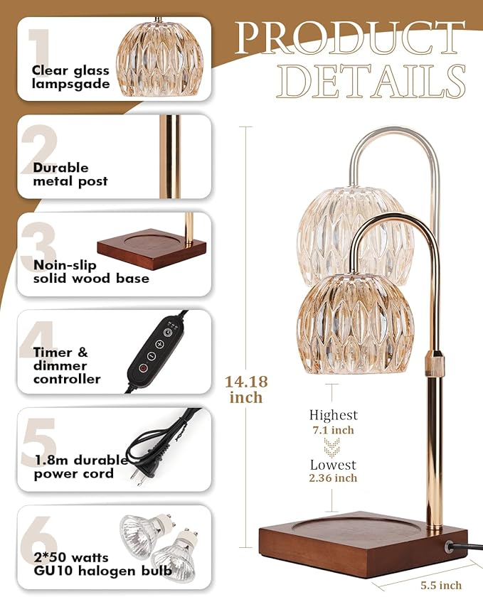 • Safety : Safely wax melts without burning candles, allowing reuse of wax and extended candle life, Uses 2x 50W GU10 bulbs (included) to melt candles without smoke, or soot, perfect for homes with kids pets and ideal for offices, bedrooms, or any space where safety matters