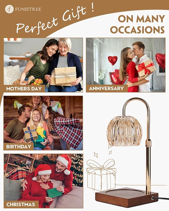 • The Perfect Gift for Every Occasion: Featuring a lotus inspired design, this candle warmer adds a touch of charm and coziness to any room, seamlessly into any space, living room, bedroom, or bathroom. This candle heater lamp is a perfect Funistree Candle Warmer Lamp, Wax Melter Warmer with Adjustable Height & Timer, Birthday Gifts for Women Mom, christmas gifts, House Warming New Home Office Decor for Jar Candles Mother's Day, housewarming, birthday gifts for mom, women, best friends girlfriend gifts Idea