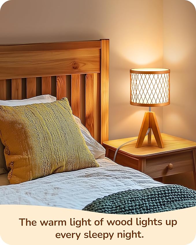 • [Lightweight & Stable Design] This bedside table lamp combines natural wood legs for a lighter build than metal bases, allowing for easy positioning, while the triangular lamp body provides enhanced stability to prevent tipping